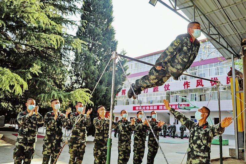 “110个,111个,112个……”“加油,坚持住,好样的!”掌声、呐喊声在训练场上此起彼伏,所有目光都聚焦单杠上那个瘦小的身影。“还能做吗?”“能!我还有劲儿!”班长陈代益陪着王泽文做完最后一个,最终成绩定格在116个,创下中队新纪录。