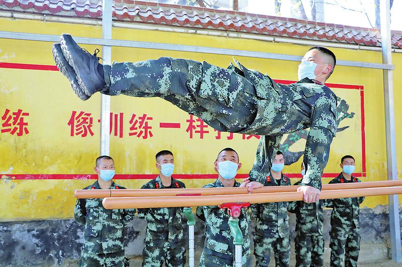 “器械小王子,这次龙虎榜你准备占几项?”“哪里哪里,咱们支队人才那么多,我还得再努力努力!”来自四川的阳光小伙王灿,入伍前就喜欢运动健身,因体能素质突出,在新兵连人送绰号“器械小王子”。