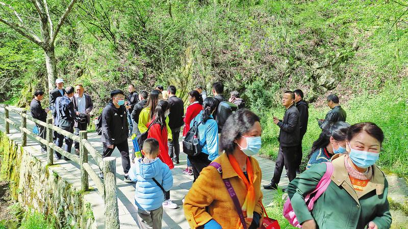 4月24日,牛背梁国家级自然保护区羚牛谷内游人众多。