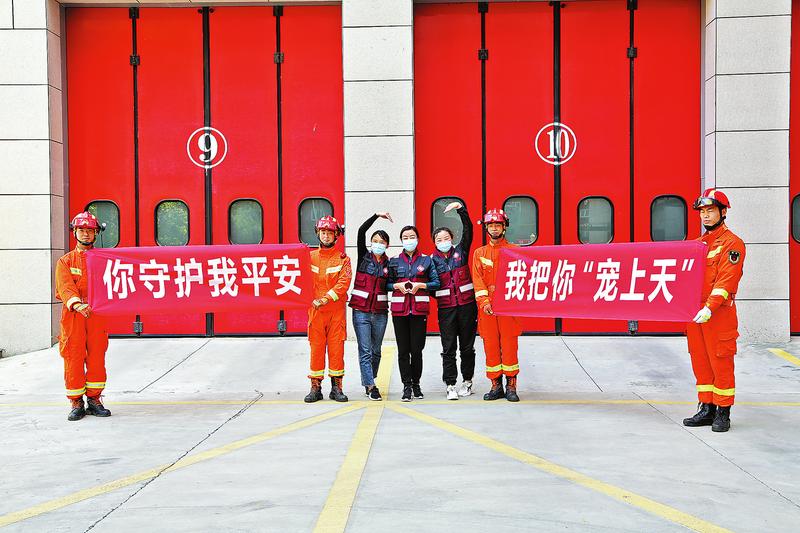 市消防救援支队丹南路特勤站站长助理刘多海说:“我们在网上看到,有抗疫人员在防护服上写到想坐消防车,所以我们今天特意邀请他们来参观体验,满足他们的愿望,同时也是向他们表达一份敬意。”