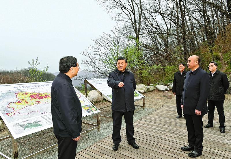 4月20日至23日,中共中央总书记、国家主席、中央军委主席习近平在陕西考察。这是4月20日,习近平在位于秦岭山脉东段的牛背梁国家级自然保护区月亮垭,察看秦岭自然生态,了解陕西省吸取秦岭北麓违建别墅问题教训、抓好生态保护等情况。(新华社 记者 谢环驰 摄)