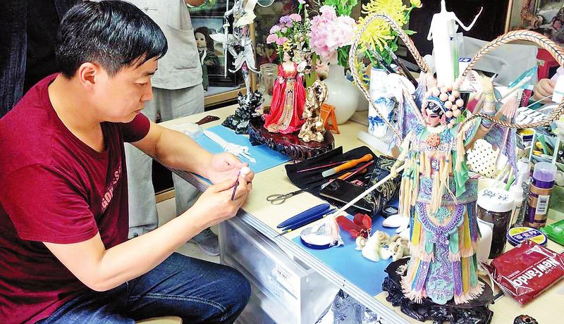 “每一种材料都有其特性。”郑更民说,“面,开脸最好用,做衣服就不适合,因为干了之后很脆、会断;而树脂粘土便于做衣服的流苏等物,是可以用剪刀剪的。”