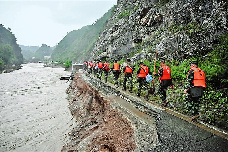 暴雨倾盆、地面泥泞,途中多处道路被冲毁,官兵们背负物资沿着崎岖山路,跋山涉水历时15个小时终于将物资送达受灾最为严重的陈涧村,并将3个村受灾情况第一时间通过卫星电话报告联合指挥部,为下一步救援行动提供有效决策。
