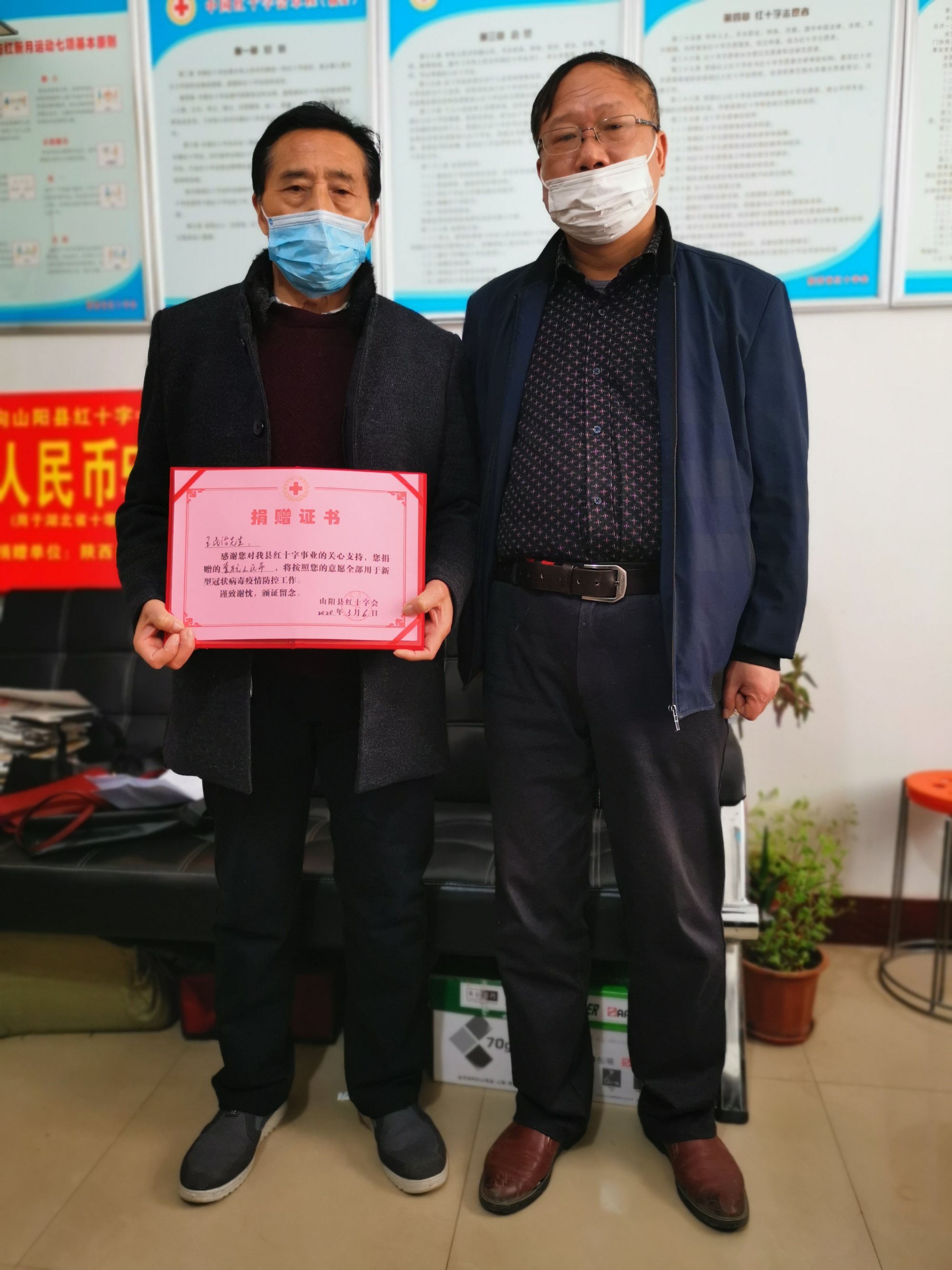在看到汶川大地震、舟曲泥石流、玉树地震的报道后,他都以最快的速度,向打工所在地的红十字会、慈善组织多次捐款。2020年3月初,全国吹响抗击新冠肺炎疫情号角后,他又果断将儿孙们孝敬他的1万元全部捐给山阳县人民医院。