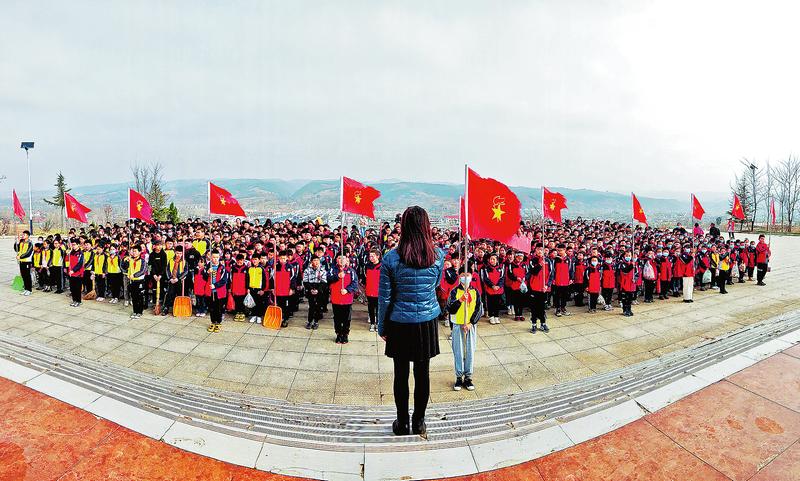 3月15日,洛南县古城镇中心小学开展“弘扬雷锋精神,建设美丽古城”环境卫生整治活动,学校组织705名少先队员沿古城街道分东、西两路捡拾地上的果皮、纸屑、烟头,清除墙壁上的小广告,打扫卫生死角,让古城街环境面貌焕然一新。(陈宏哲摄)
