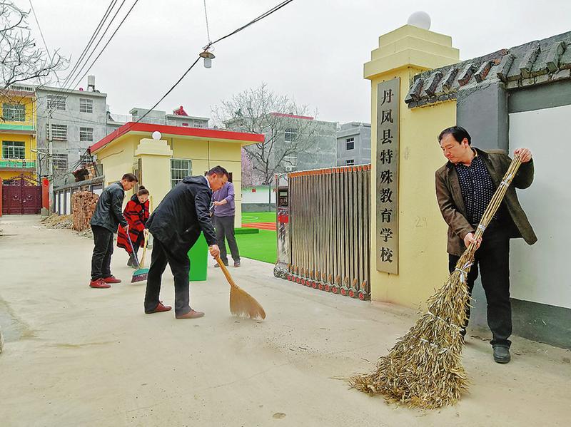 3月15日,丹凤县特殊教育学校教职工在清扫校园周边卫生环境,为周边群众自觉维护良好的卫生环境起到带头宣传作用。据了解,丹凤县特殊教育学校是丹凤县新成立的一所学校,将为全县200多名特殊儿童提供优质的教育保障。