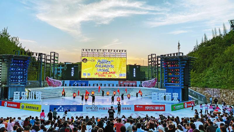 洛南县音乐小镇组织举办了丰富多彩的文娱活动,吸引了众多游客前来游玩。(记者 李敏摄)