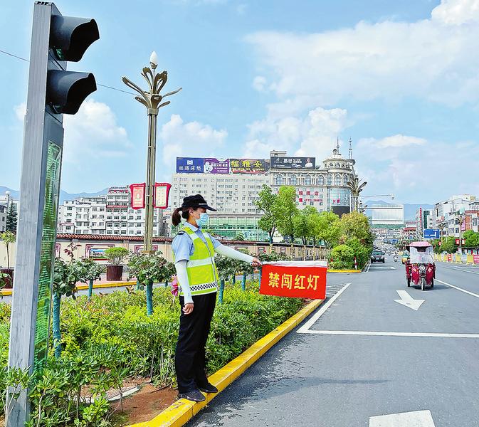 ⑤杨小惠指挥行人遵守交规