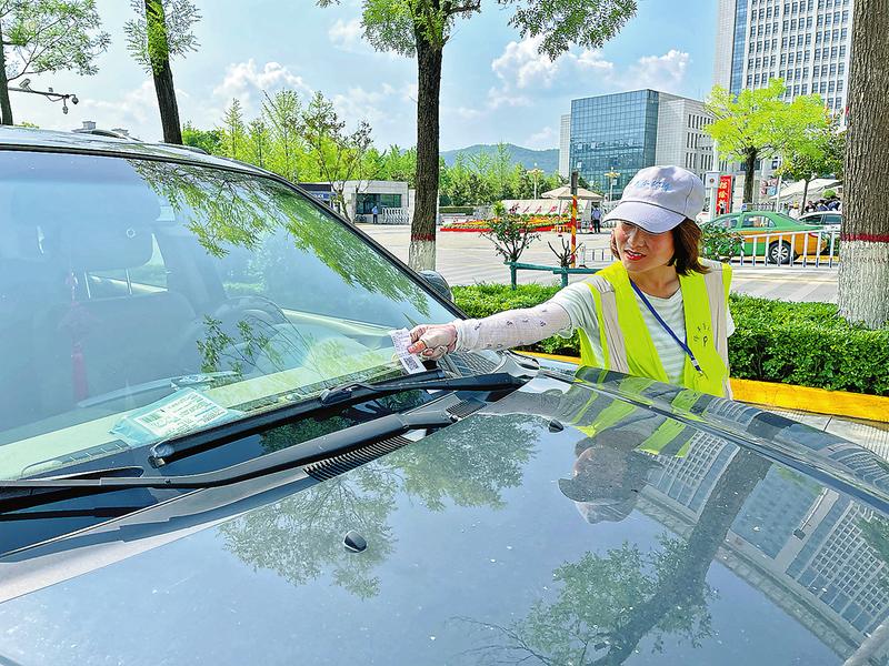 ③杨伟娜为停放的车辆计时