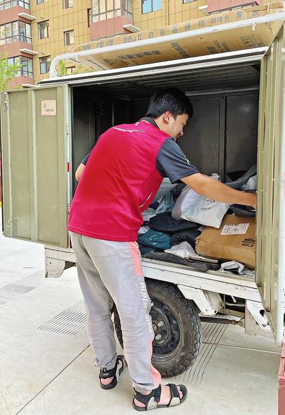①孔维正在派送包裹