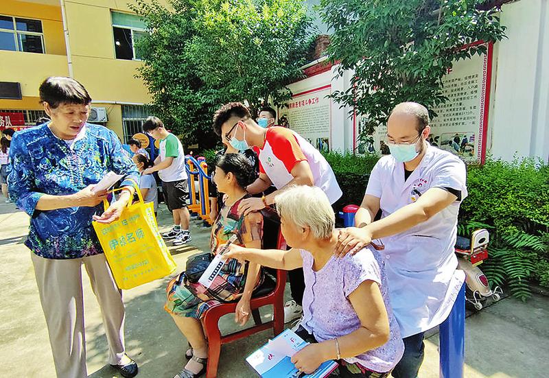 7月14日,陕西中医药大学“医路向民”爱心医疗志愿服务队冒着酷暑深入商州区城关街办四皓社区开展专家义诊。