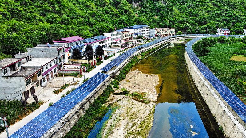曹坪镇河岸的光伏发电走廊