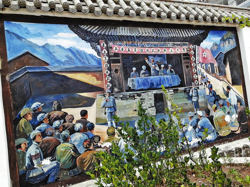 1935年4月,红二十五军政委程子华、军长徐海东在红岩寺戏楼召开千人大会,宣布中共五星县委、五星县苏维埃政府成立。(资料图片)