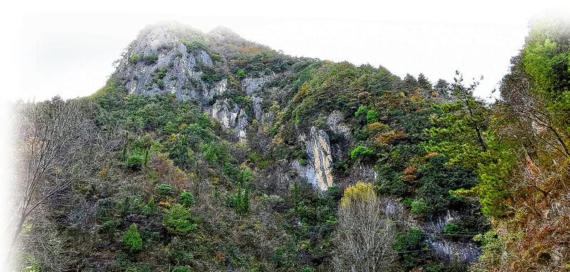 从天桥社区(原天桥镇政府所在地)明朝“天桥”遗址处下行,两山对峙,如巨型石门扼控天桥河。进入这道“石门”,但见两侧山环水绕,林木葱郁,山花点缀,群群喜鹊与不知名的小鸟穿林过溪,让人恍如来到世外桃源。