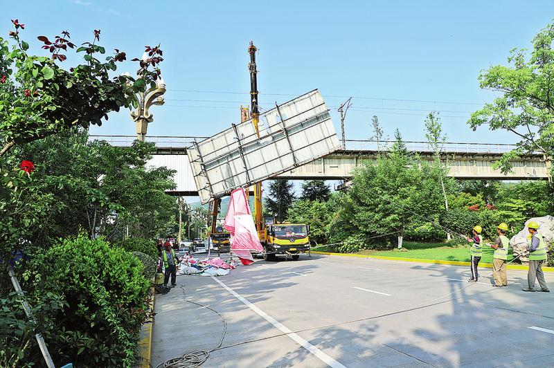 指挥部立足实际迅速谋划,抓早动快,于7月31日率先全面启动中心城区违规户外广告整治拆除工作,其他各县区也紧锣密鼓、相继启动。对未经审批、设置超期、存在安全隐患、有碍观瞻的户外广告进行全面摸底核查,详细掌握每处户外广告的位置、类型、面积、设置内容、业主信息等,并分类逐一登记造册,研判认定违规违法户外广告整治对象,在此基础上制定拆除方案,明确目标任务、责任清单和时间节点,实行挂图作战、销号管理,为整治拆除工作奠定了坚实的基础,确保专项行动精准发力、快速推进。