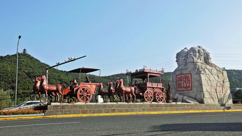 商山四皓主题雕塑位于市区南大门商洛西高速出入口,由秦末汉初的四位隐士东园公、绮里季、夏黄公、甪里先生及车马组成。商洛历史悠久,文化底蕴深厚,仓颉造字、商鞅封邑、闯王屯兵,每一部史诗都传承着这座城市昂扬向上的精神。在众多的历史人物中,商山四皓以独特的行为方式和丰富的文化内涵被世代传诵。商山四皓是商洛历史文化的一张名片,为商洛旅游和经济发展增添了软实力。 (记者杨森 摄)