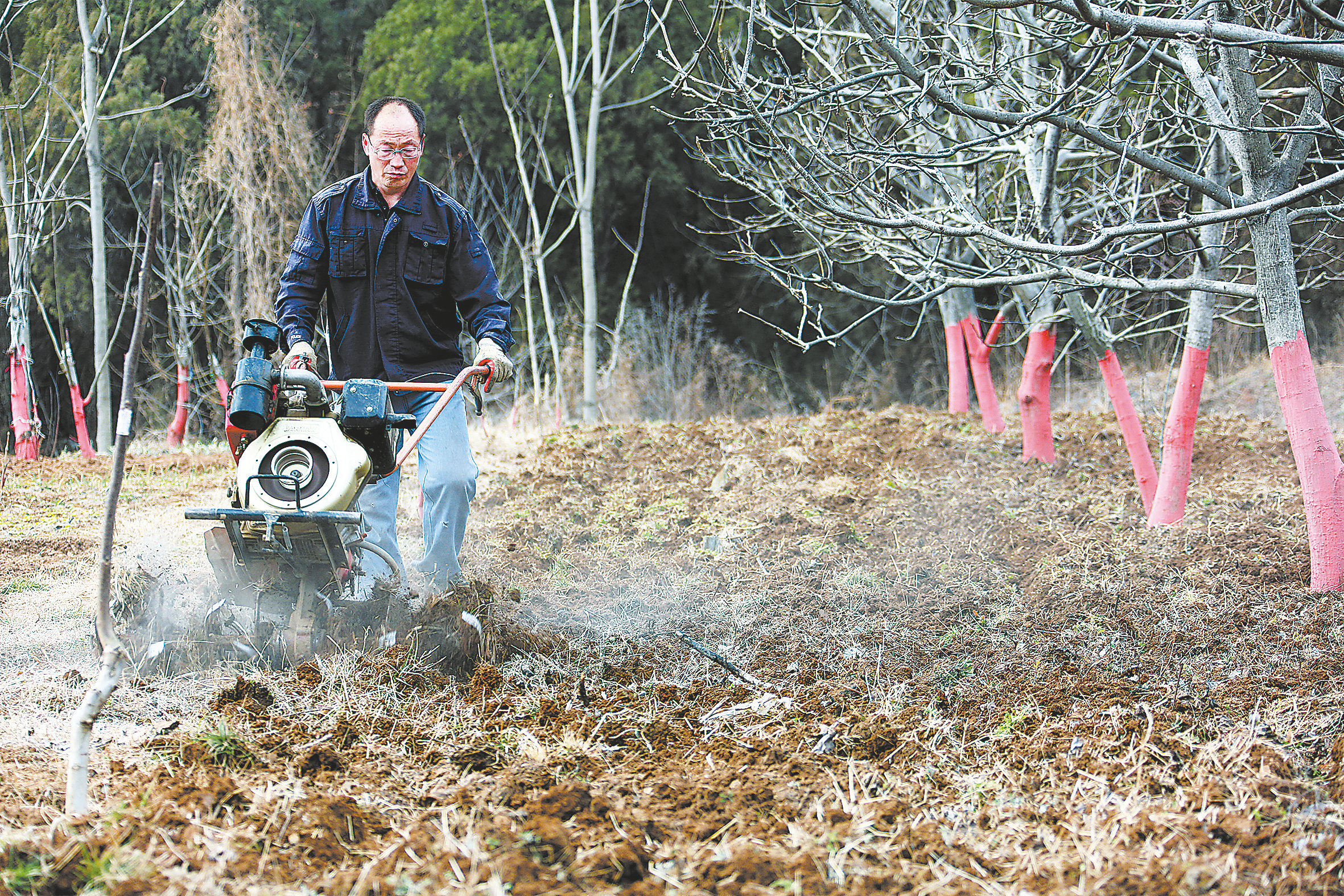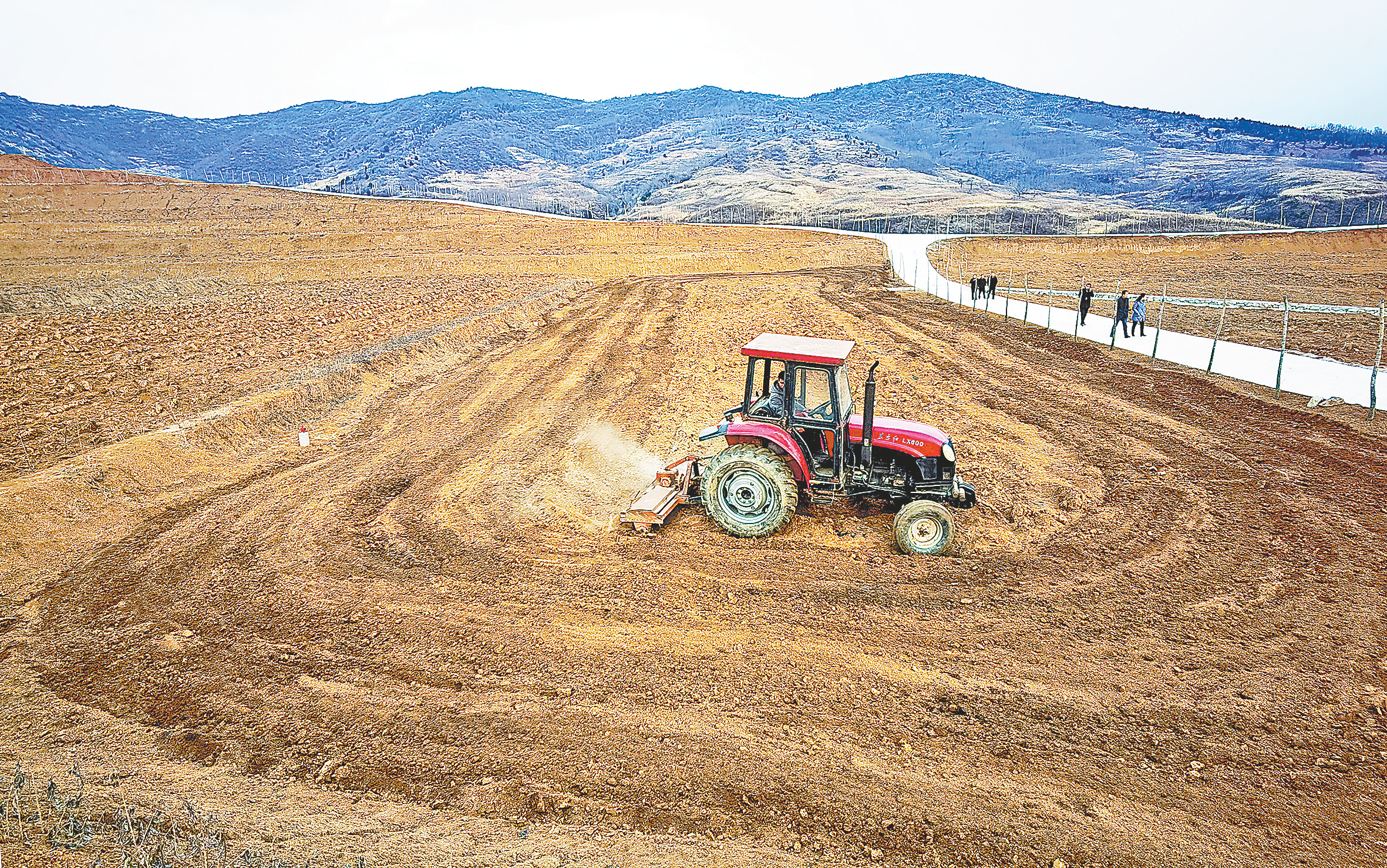 商州区陈塬街办上河村村民使用旋耕机在核桃林下整地,为林下种植做好准备。