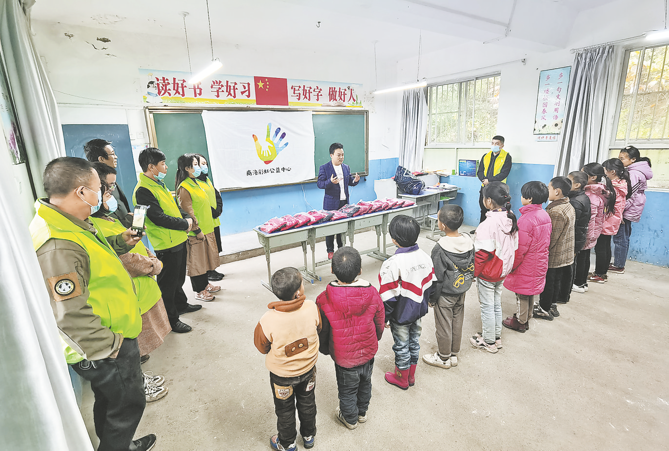 在做儿童服饰定制与批发的几年间,唐志宪跑遍了商洛各个县区、镇、村的小学与幼儿园。工作之中,最让他印象深刻的便是山区那些贫困家庭儿童、单亲家庭儿童、孤儿与残疾儿童对校服的渴望。他将这些情况都反馈给了公司,申请帮助这些孩子。经过多次沟通,终于为丹凤童乐双语幼儿园赠送60套童装。唐志宪说:“没有被父母带出去,留在村里上学的孩子大都经济上有困难。一套校服对我们普通家庭来说不算贵,但对这些困难家庭来说是一笔不小的开支,我能帮多少算多少吧。”之后,唐志宪先后帮助了商州、丹凤、山阳、洛南等县区的多家幼儿园与小学,赠送了校服近500套。