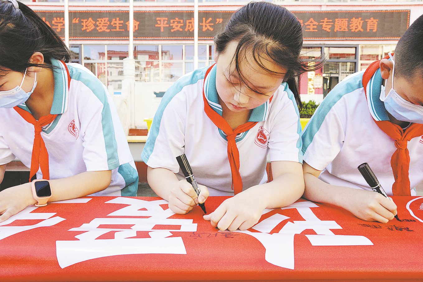 7月11日,全市中小学生放假第一天,每名学生手里都拿着一份《暑期告家长安全责任书》,向家长强调暑期预防青少年溺水的重要性。同时,学校还组织中小学生在家长的陪同下一起观看预防溺水专题节目,市县相关部门在假期前夕通过各式各样的活动,提高学生和家长的安全意识。