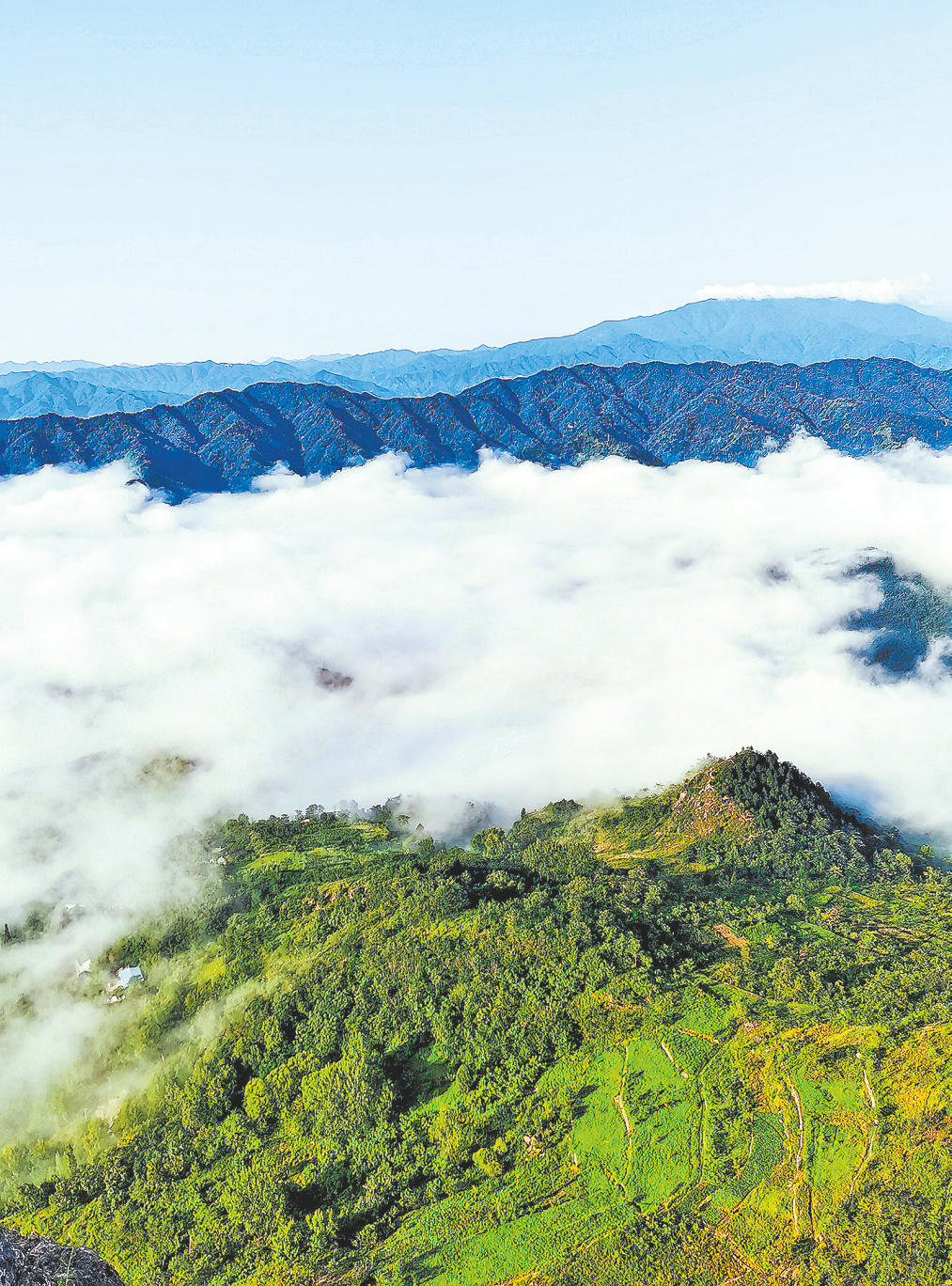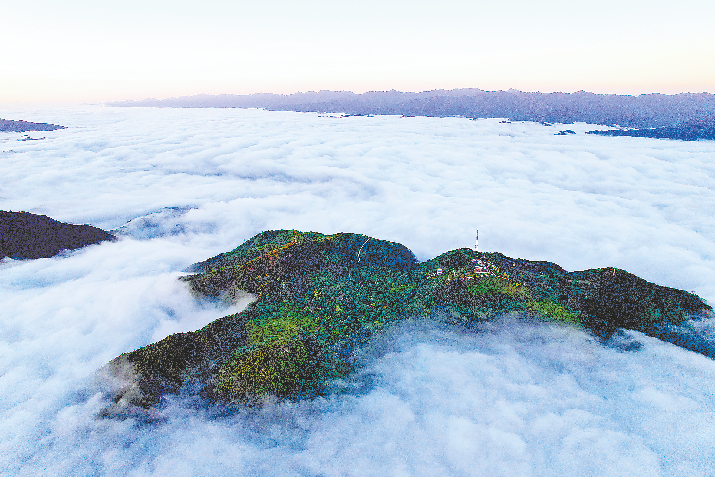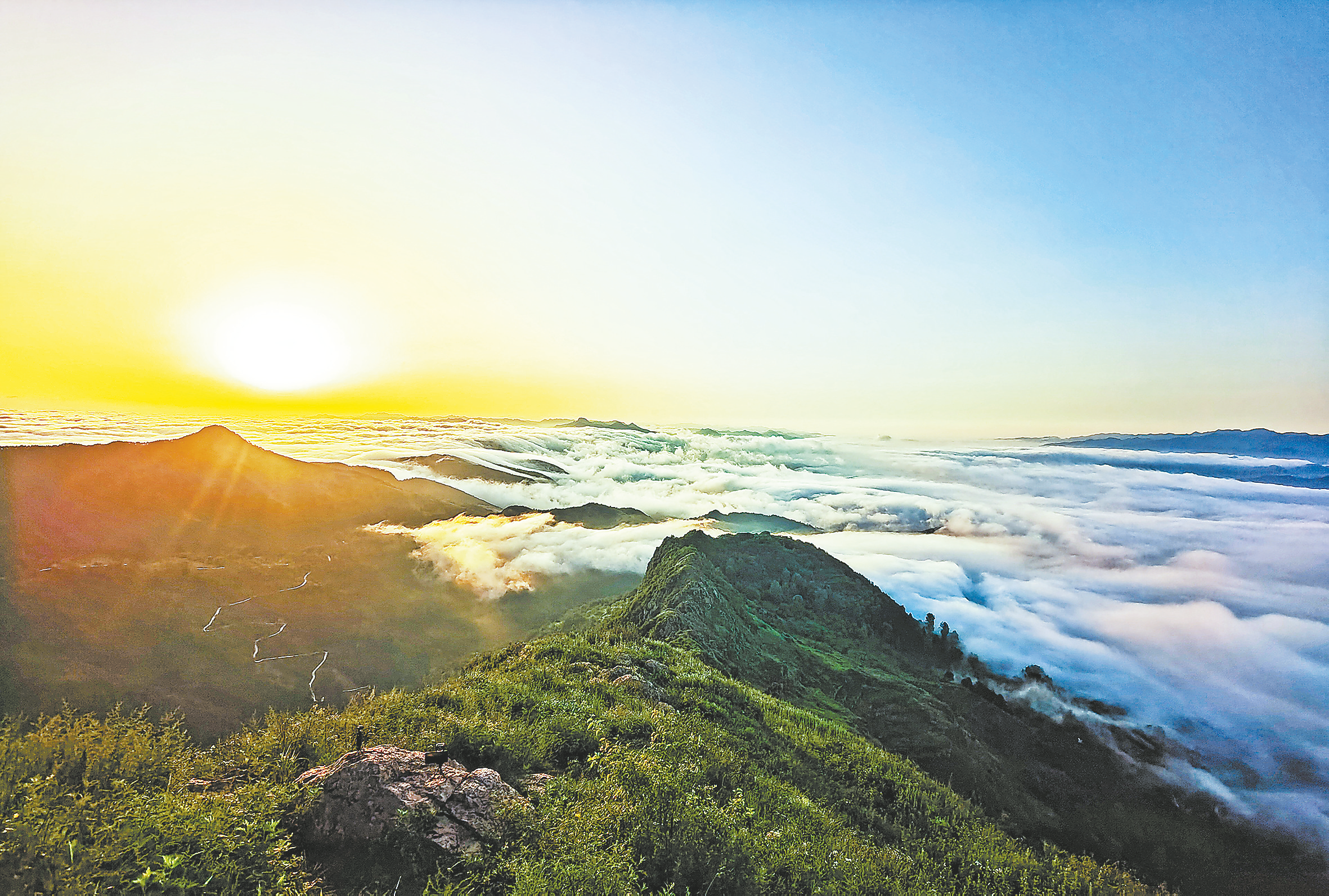 远山、云海、熊耳山交相映辉,如同一幅美丽画卷。