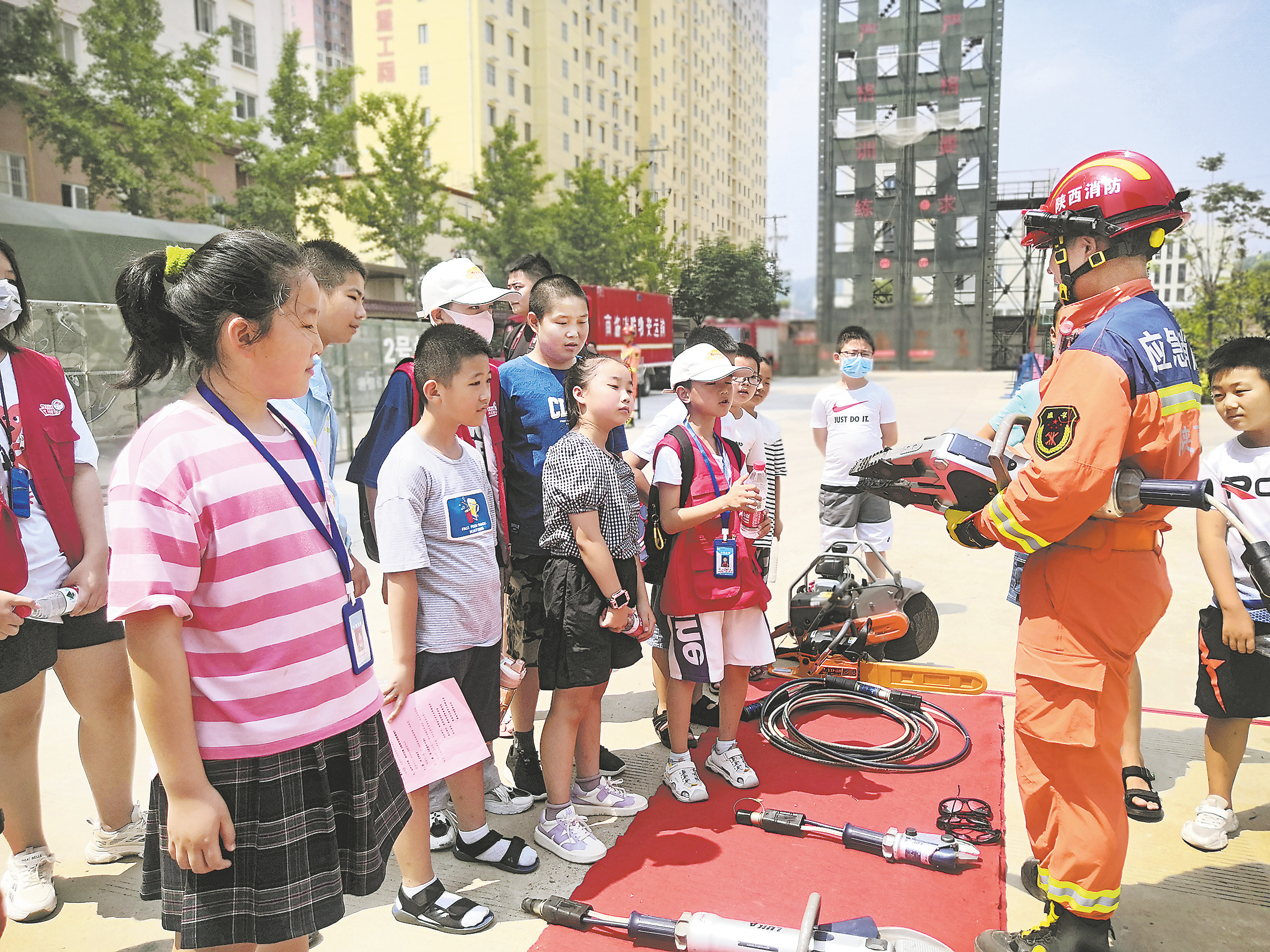 8月4日,省文联、省戏剧家协会走进市消防救援支队,开展文艺“六进”志愿服务活动。现场进行了文艺演出,包含舞蹈、歌曲、商洛花鼓、相声、魔术、杂技等10多个节目,为消防员送上了一道丰富多彩的文化大餐。演出结束后,省上的艺术家及商洛日报小记者一同参观了消防设施,学习了消防安全知识。 (本报记者 肖 云 摄)