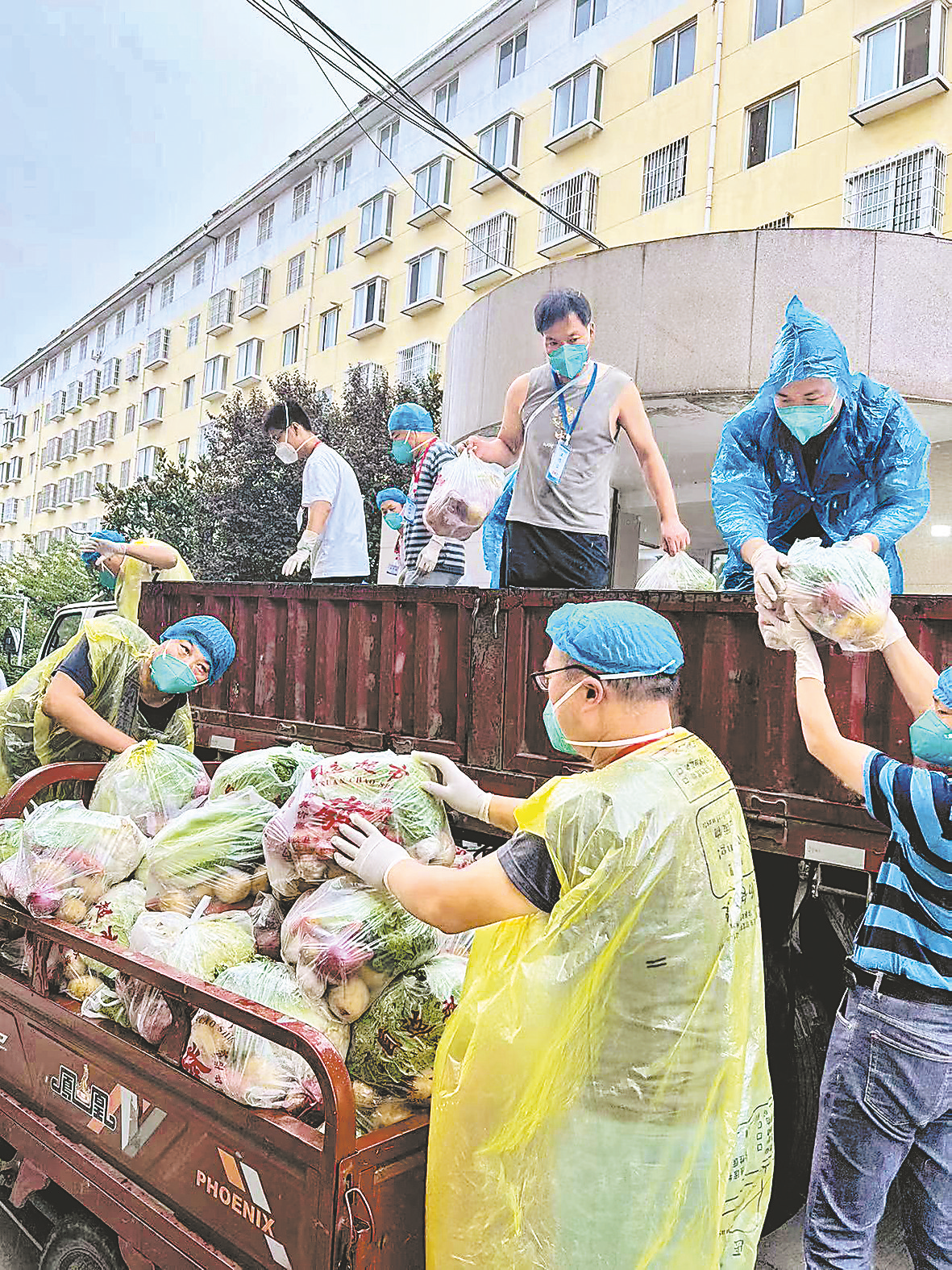 下沉小区党员干部冒雨为住户送菜