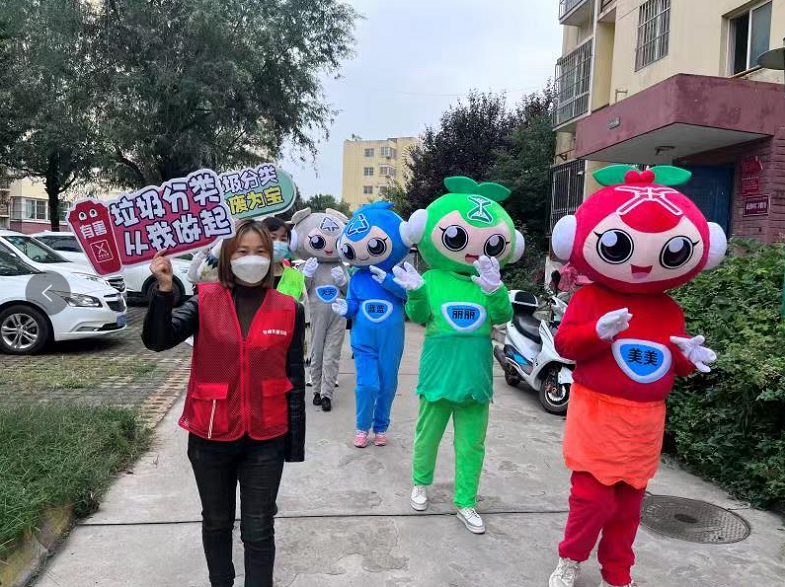同时,活动中积极推广应用我市生活垃圾分类宣传LOGO标志和卡通形象。以商洛市生活垃圾分类卡通形象-环保小卫士“美美、丽丽、蓝蓝、天天”为原型制作的四个可爱灵动的卡通布偶吸引了众多居民围观。一些小朋友积极、踊跃参与,手举垃圾分类宣传牌和志愿者们一同开展宣传。