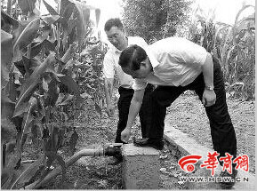 19日,商洛市委书记胡润泽(右一)带队深入农村查看旱情