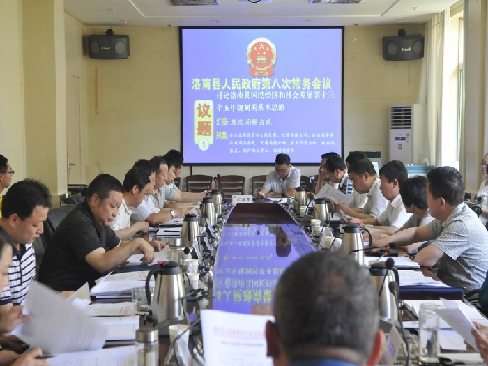 2015年6月10日,县政府召开第八次常务会议。会议讨论了洛南县国民经济和社会发展第十三个五年规划的基本思路,研究了全市招商引资工作会议精神暨我县贯彻意见及我县“双包双促”精准扶贫及下一步工作意见。
