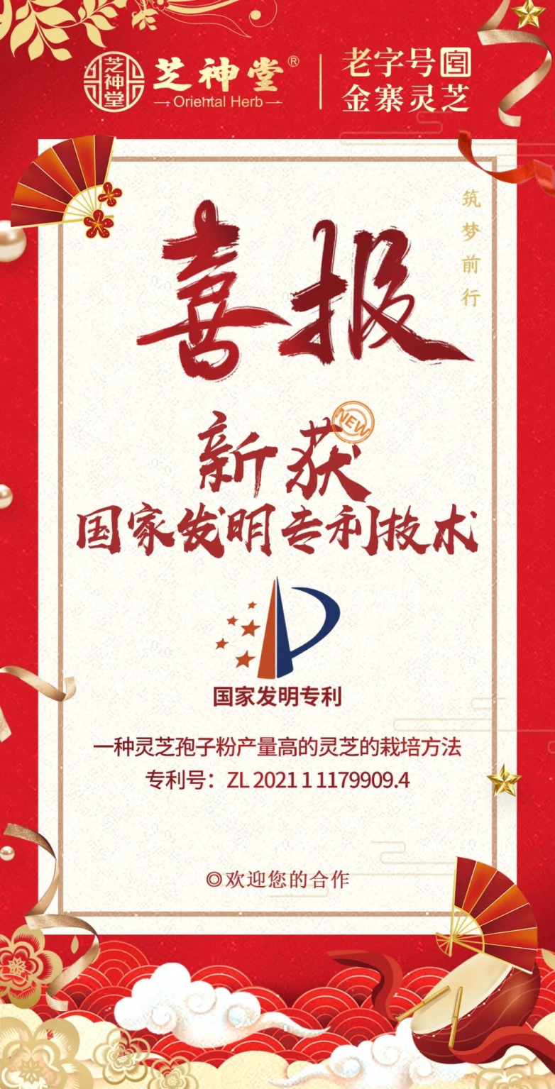 近日,芝神堂的核心栽培技术“一种灵芝孢子粉产量高的灵芝的栽培方法”正式获得国家知识产权局发明专利授权(专利号:ZL202111179909.4)。这标志着芝神堂在大别山灵芝有机栽培领域的技术研发实现重大突破,进一步巩固了其行业技术领先地位。