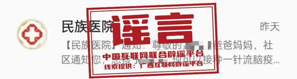 谣言:???广西壮族自治区民族医院发布关于流脑疫苗接种通知?