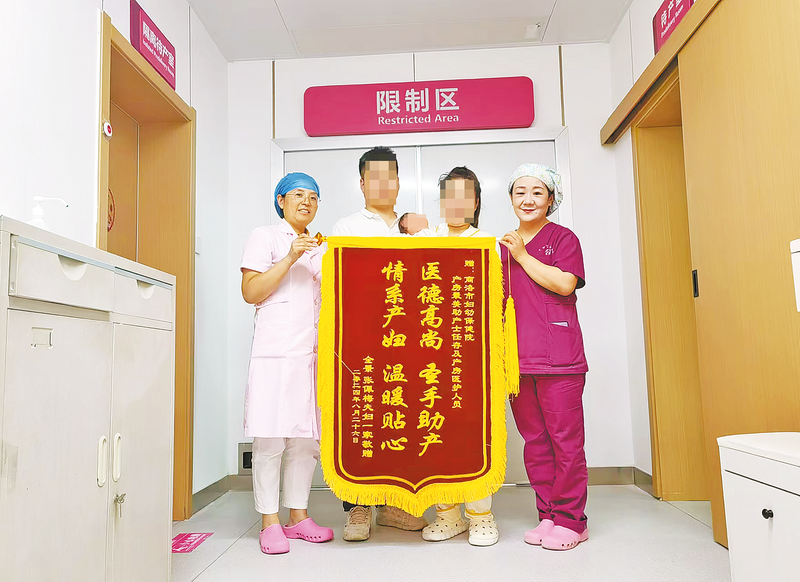 9月12日,一对夫妻抱着刚满月的宝宝来到市妇幼保健院产科,为助产士们送上一面印有“双手托起新生命 无微不至暖人心”的锦旗,年轻的妈妈眼含泪水,不断重复感谢的话语。