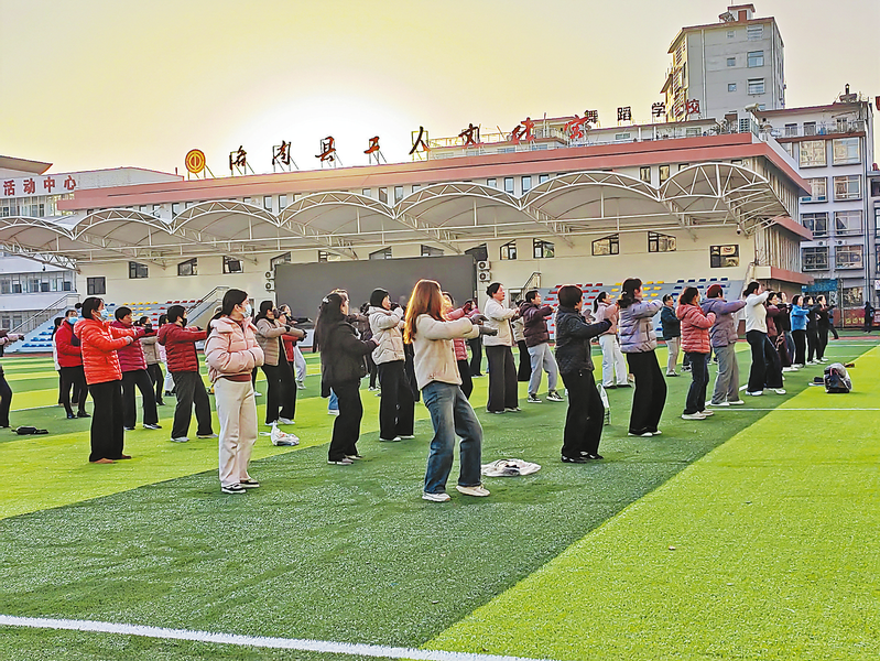 近日,改造一新的洛南县工人文化宫正式投入使用。据了解,该工人文化宫由原县体育场改造而成,其功能集职工服务、教育培训、健身运动和文化活动等于一体,为普惠性服务的公益性场所。图为群众在活动场地健身。