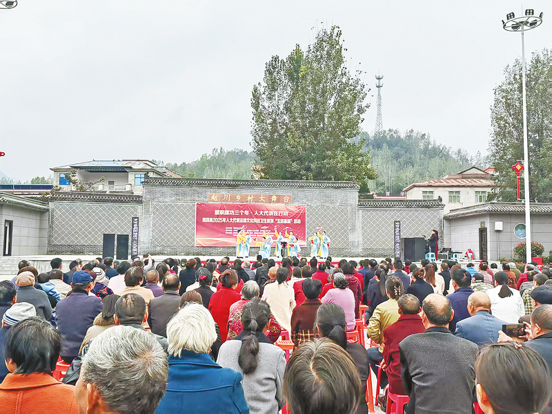 活动刚开场,县剧团的演员一亮相,就把现场气氛拉满。当经典豫剧《一家人欢天喜地把我请》的旋律响起,清亮的唱腔瞬间穿透人群,台下观众的掌声、叫好声此起彼伏。“这戏我爷爷能倒着唱!你看他,手跟着拍子晃,嘴就没停过。”后川村村民阮小倩举着手机给爷爷录像,镜头里的老人眯着眼、跟着哼唱,脸上的笑容比阳光还灿烂。