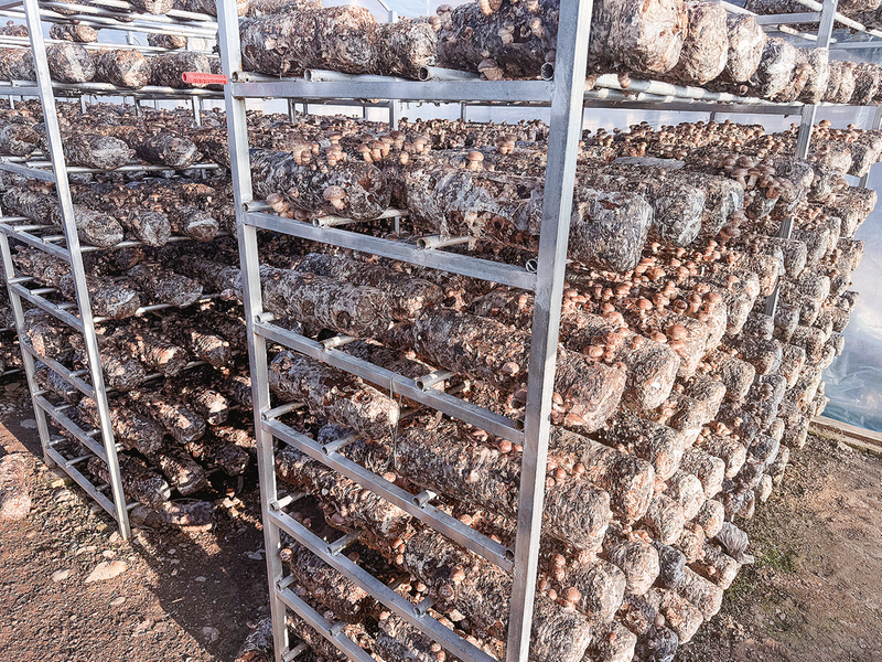 11月19日,在店坊河村香菇种植基地,暖阳下的香菇长势良好。