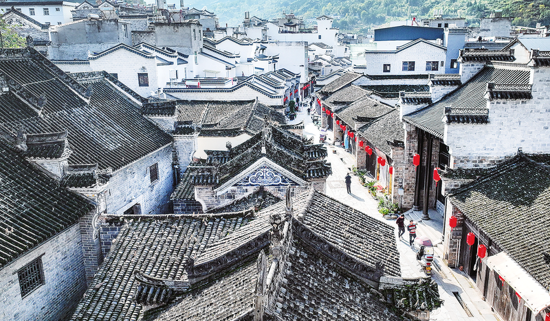 登高俯瞰,陕西省内保留规模较大且较完整的明清古建筑群——明清街静卧眼前,当代作家唐庆华的《漫川关》仿佛在耳畔回响: