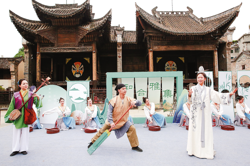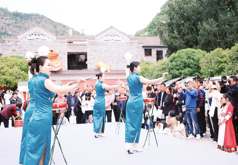 ◁节假日期间,由漫川关镇政府主办的“和合雅集”主题文化活动在双戏楼前广场举行,精心编排的节目表演让游客近距离感受“和合”文化。