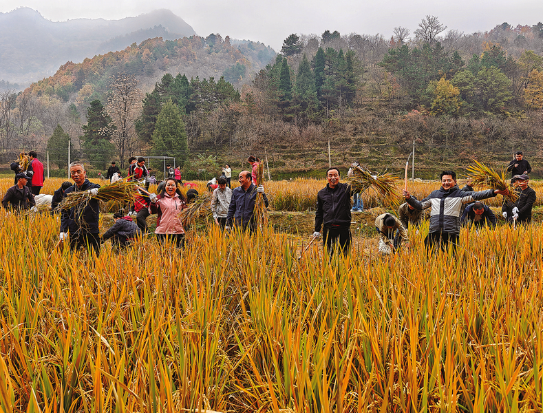 本报讯 (记者 杨 鑫 王孝竹)11月4日,“遇‘稻’美好 欢庆丰收”闫坪村稻谷收割体验活动在商州区三岔河镇闫坪村拉开帷幕。市委办公室、中国邮政集团定点帮扶商洛市商州区联络组、商州区农业农村局、商州区商务局、三岔河镇党委政府、三岔河九年制学校等多家单位携手参与,共同描绘出一幅“庆丰收、促振兴”的生动图景。