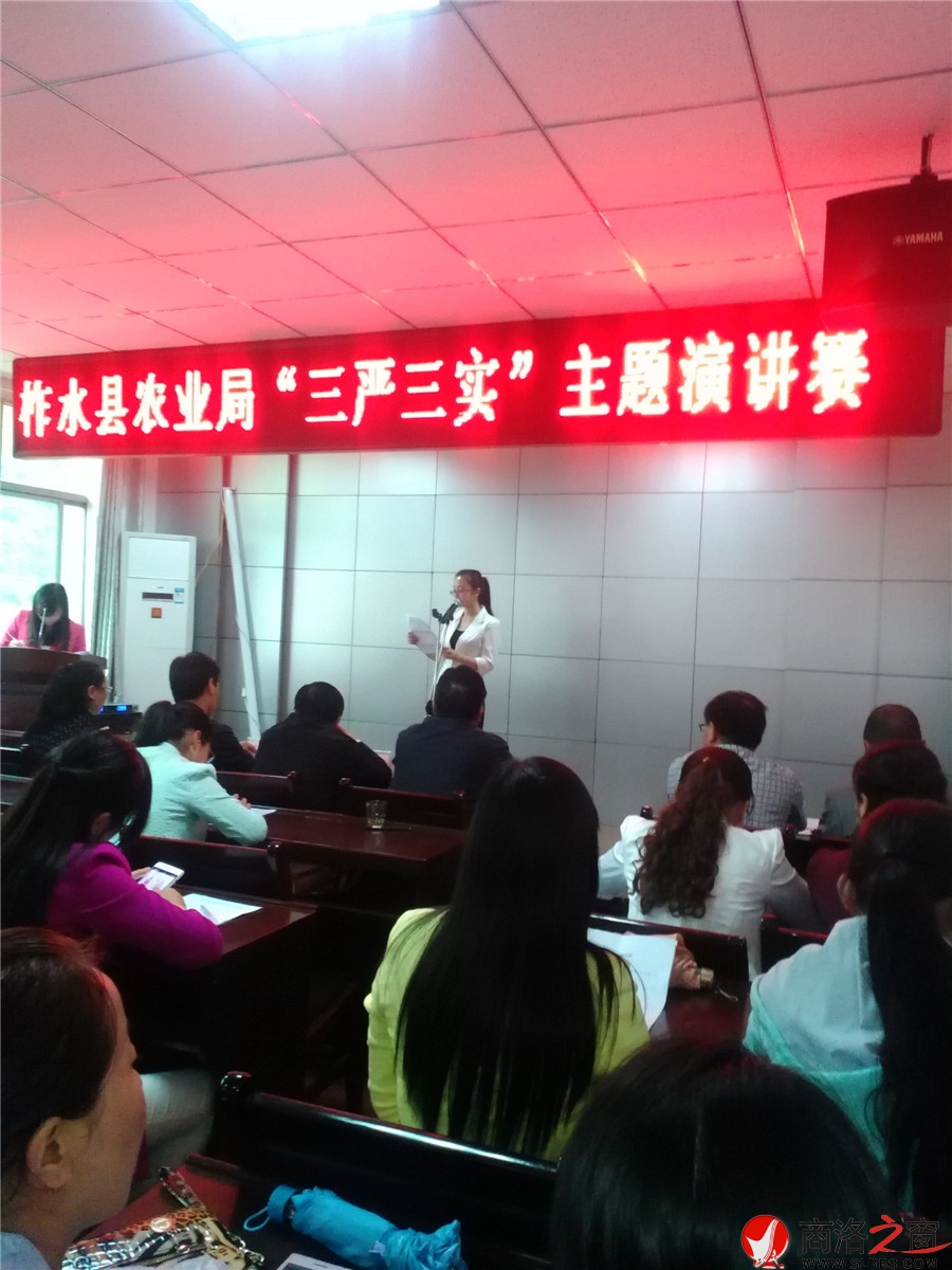 商洛之窗讯(王有明)6月3日下午,柞水县畜牧兽医中心全体干部在农技培训中心参加了柞水县农业局“三严三实”主题演讲赛。该中心两名选手结合自身工作特点,通过对动物卫生监督、兽医防疫工作和畜牧生产当中发生的日常工作的讲述,展现了畜牧人的工作面貌。号召农业工作者们“立马就办”从严要求自己,用实实在在的工作业绩贯彻好《党章》要求,自觉做好“三严三实”学习教育活动。