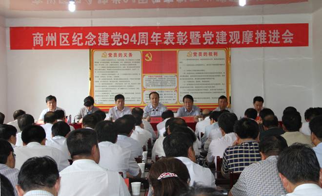 6月29日,商州区召开纪念建党94周年表彰暨党建观摩推进会。区委书记张盈安出席会议并讲话。区委副书记王浩主持会议。区委常委贾建刚、苏延利、王亚珍,李录虎、王小军参加会议。
