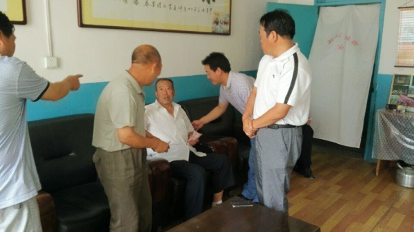 6月30日,在建党94周年来临前夕,城关街道办事处党委书记赵新选带领办人大党工委主任王立行、党委副书记江建军一行,在社区、村干部的陪同下,对困难党员、老党员、离任村社区干部开展走访慰问活动,向他们致以敬意和节日的问候,并将党的关怀和温暖送到他们手中。