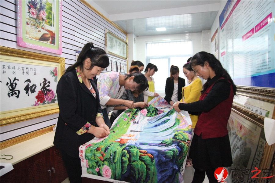 商洛之窗讯 陕西省镇安县大力推进陕南移民搬迁工作,为了让搬迁群众搬得出、稳得住、能致富,镇安县围绕“文化名城引领、优美小镇支撑、美丽乡村点缀”的搬迁目标,加快推进新型城镇化,五年来,已有9265户3.4万人搬离深山,城镇化率提高了7.8个百分点。图为(被李克强总理称为“中国第五绣”秦绣,正成为搬迁移民的支柱产业。镇安县美云秦绣回龙镇幸福里社区产业合作社正在联合生产绣品,销往海外。(陈风军 汪荣良 摄)