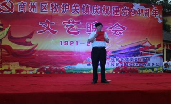 6月30日,牧护关镇院内洋溢着节日的喜庆,全镇党员干部群众欢聚一堂,在这里举办庆祝中国共产党建党94周年文艺晚会。观看演出的干部群众约500余人。