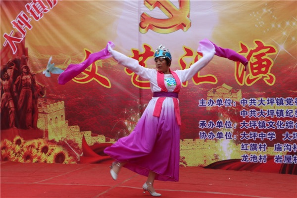 文艺演出在镇长张撑柱同志热情洋溢的致辞中拉开了帷幕,整场文艺演出节目丰富多彩,有舞蹈、歌曲、独角戏、相声表演等18个节目。首先出场的是红旗村舞蹈队带来的舞蹈串烧《欢聚一堂》《张灯结彩》,欢快激昂的音乐、轻快优美的舞姿,赢得了全场观众的阵阵掌声和喝彩声。接着龙池村表演的《鼓乐合奏》、庙沟村老大爷表演的独角戏《上工地》等都是群众自编自演的优秀节目,形象的展现了近年来家乡面貌翻天覆地的变化,庙沟村相声表演《风的研究》更是体现出了生活就是个大舞台,群众的智慧是无穷的,它是根据开展党的群众路线教育实践活动,狠抓“反四风”创作而来,诙谐风趣的台词让观众拍手叫好,让人们在形象的表演中认识到“反四风”的必要性。园山村田昌勇的诗朗诵《党啊,亲爱的母亲》,深情回顾了我党发展史,送上了中华儿女对祖国母亲最深切的祝福。红旗村蒋娟的歌舞《站在高岗上》动感十足,活力四射。中学老师汤泽和幼儿园老师的歌伴舞《你是我的玫瑰花》等节目以动听的歌曲、优美的舞蹈、饱满的情感赢得场下一片喝彩,一个多小时的演出,展现了大坪人民积极向上的精神面貌。