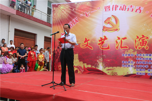 6月30日,在建党94华诞来临之际,大坪镇纪委、镇团委、镇文广站共同筹办了题为“青春倡廉”暨庆祝七一文艺演出活动。团县委书记李博、县纪委宣教室主任胡太庚、文广局副局长杜云山等同志观看了演出。