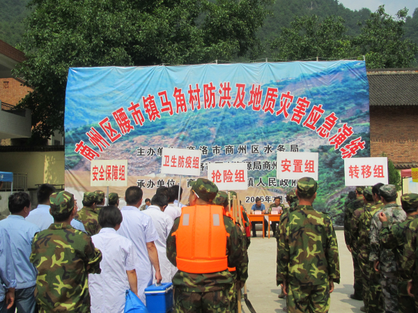 7月10日,商州区在腰市镇马角村中心小学门前操场成功举办2015年防汛及地质灾害应急避险演练活动。区政府副区长罗继民现场指挥,商洛市应急管理办公室、商州区应急管理办公室、区水务局、区防汛办、国土商州分局,腰市镇党委、政府及所辖水务站、国土所、派出所、武装部、卫生院、林业站、电管站、民政办、财政所以及22个行政村负责人,全区18个镇办应急管理员和水务站站长等200余人参加了此次演练活动。