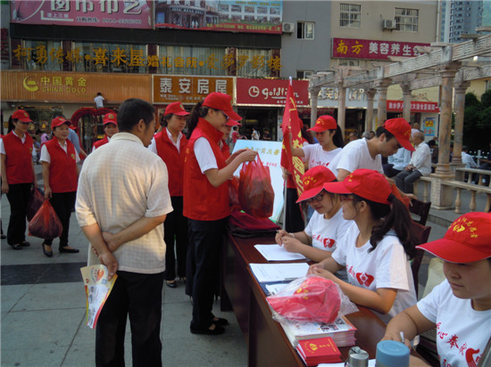 值此协会成立一周年之际,在镇安县中心广场开展了为期四天(2015年8月27日至2015年8月30日)、以“爱心奉献、朝阳同行”为主题的“闲置物再利用、环保宣传、文明劝导”等系列主题活动,意在打造社会公益平台,营造社会公益氛围,让更多市民参与爱心奉献、朝阳同行。
