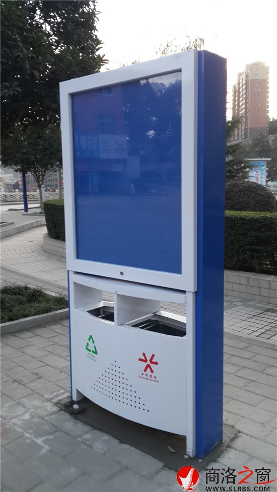 图为,近期该县投资50万元为城区街道及路段安装多功能环卫果皮箱500个;此举,既提升了栗乡镇安城市品位,又成为山城一道靓丽的风景线。
