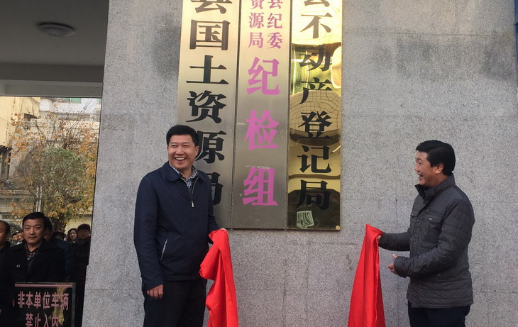 政府副县长李阜灏、国土局局长李相林为不动产登记局揭牌