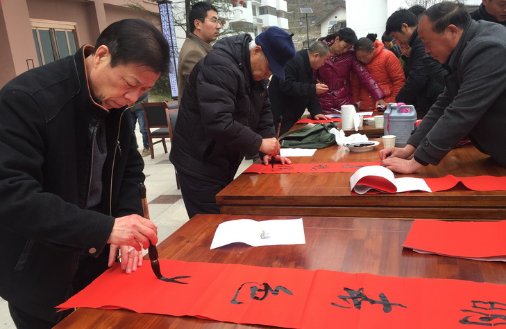 陕西省文化产业促进会书法艺术家文化下乡送春联活动暨镇安创作基地授牌仪式在永乐街道办太平村栗乡苑举行